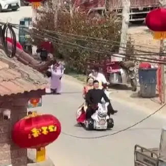 3月29日,安徽宿州一对00后新婚夫妻以摇摇车替代传统婚车接亲,因两家距离不足一公里,新郎称此举为避免接亲流程过快,同时实现童年梦想。