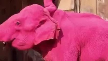 度65岁大象死亡 生前被涂粉色颜料