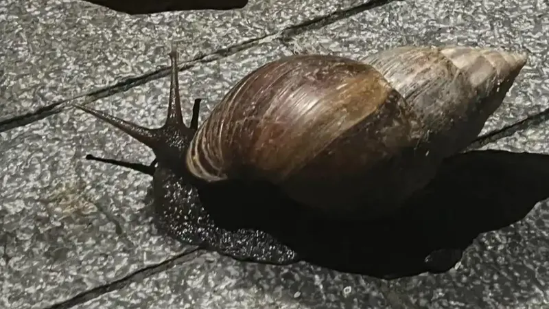 广东暴雨后巨型蜗牛泛滥 携带寄生虫