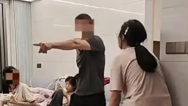 男孩沉迷手机不吃饭 父亲拿棍管教
