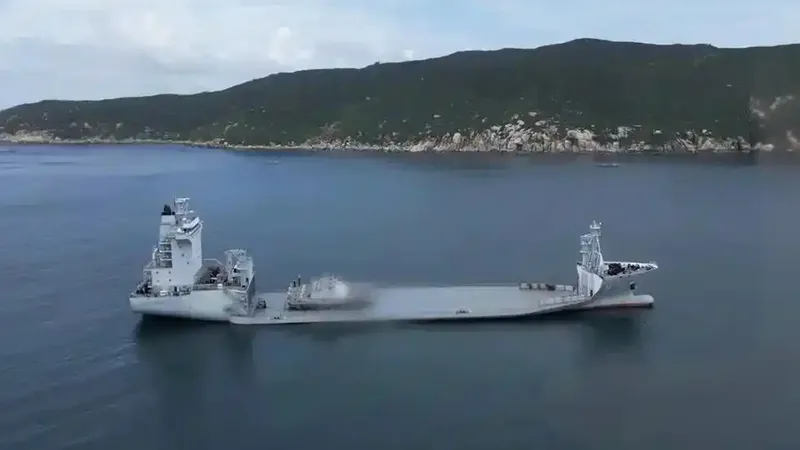 人民海军最新型711型半潜船饮马湖船,舷号834。除了将有故障的军舰安全运回基地维修‌,作为“海上平板车”,半潜船还可快速部署坦克、气垫艇、直升机等重型装备至远海岛礁,甚至充当“海上中转平台”,连接大型运输舰与小型登陆艇,提升登陆作战效率。