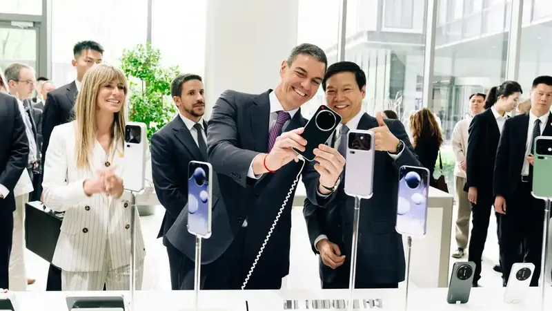 4月13日,正在中国进行正式访问的西班牙首相桑切斯一行到访位于北京的小米科技园。小米集团创始人、董事长兼CEO雷军陪同参观小米科技展厅,桑切斯拿起小米17 Ultra手机与雷军自拍。