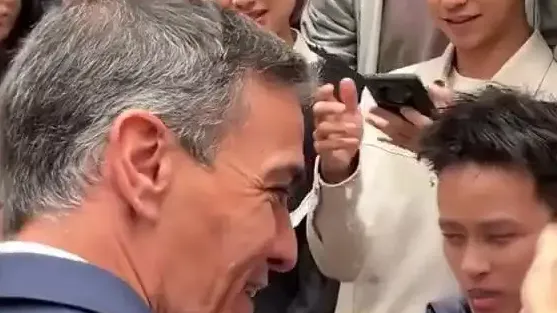 4月13日,西班牙首相桑切斯访问清华大学和学生们热情互动,握手都握不过来了。