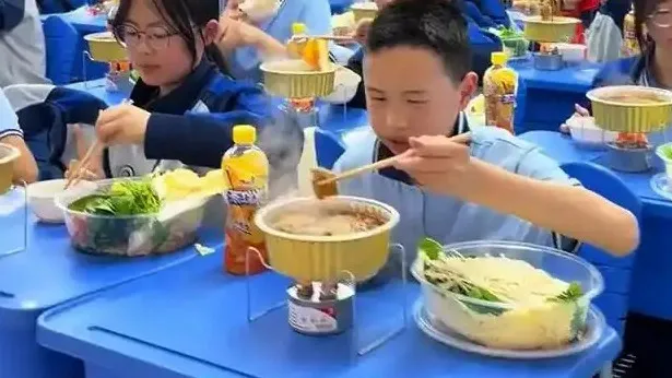 近日,安徽宣城一中学老师组织全班同学边吃火锅边看电影,学校回应称:学生表现优异,值得奖励。