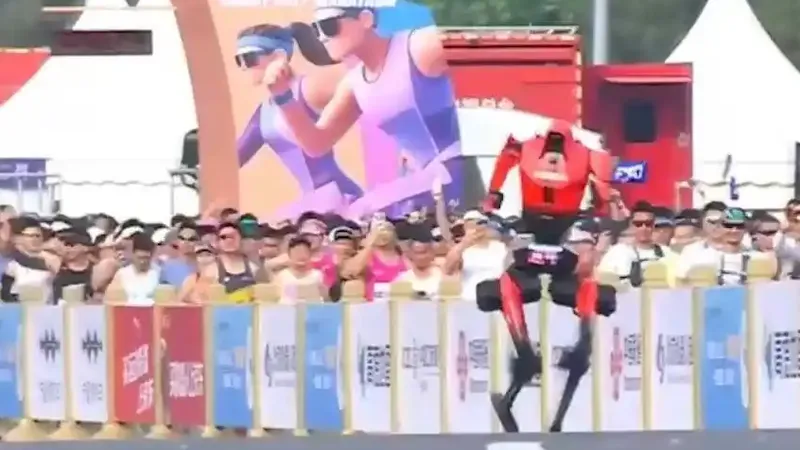 4月19日,2026人形机器人半程马拉松在北京亦庄正式开跑。来自北京荣耀的绝影赤兔队机器人“闪电”率先出发,起跑后便甩开人类跑者近100米,展现出强劲的竞速能力。