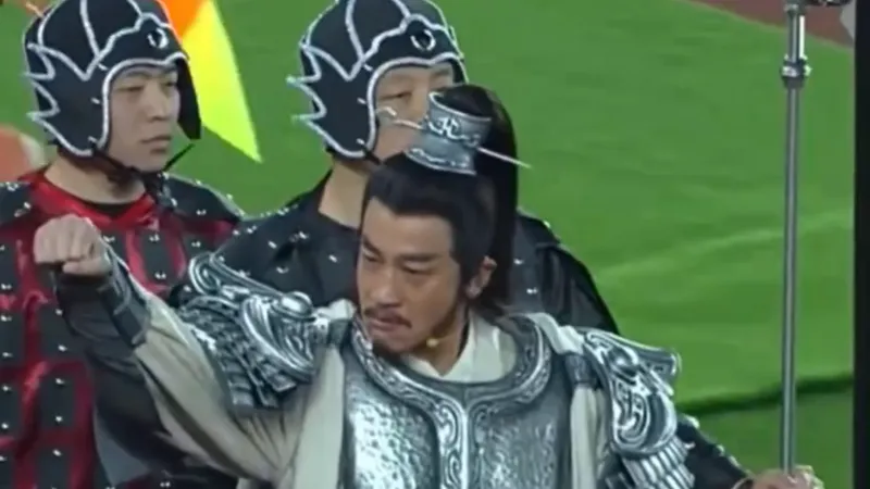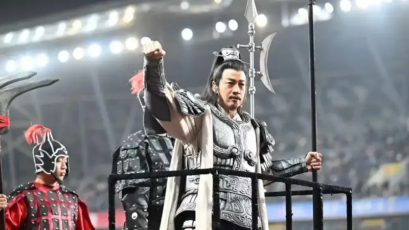 4月18日晚,何润东扮项羽亮相“苏超”,助阵宿迁队。最终,宿迁队2:0南京队。网友:“霸王”没白请!