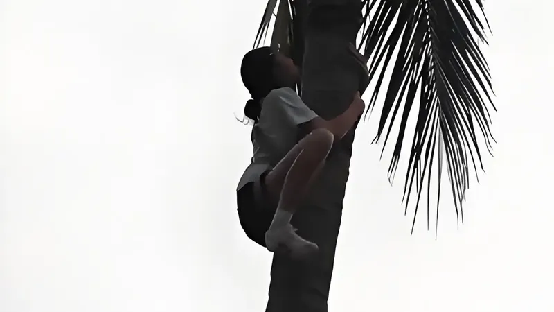 4月19日,海南“三月三”攀椰大赛,16岁女生17秒上树夯爆了!